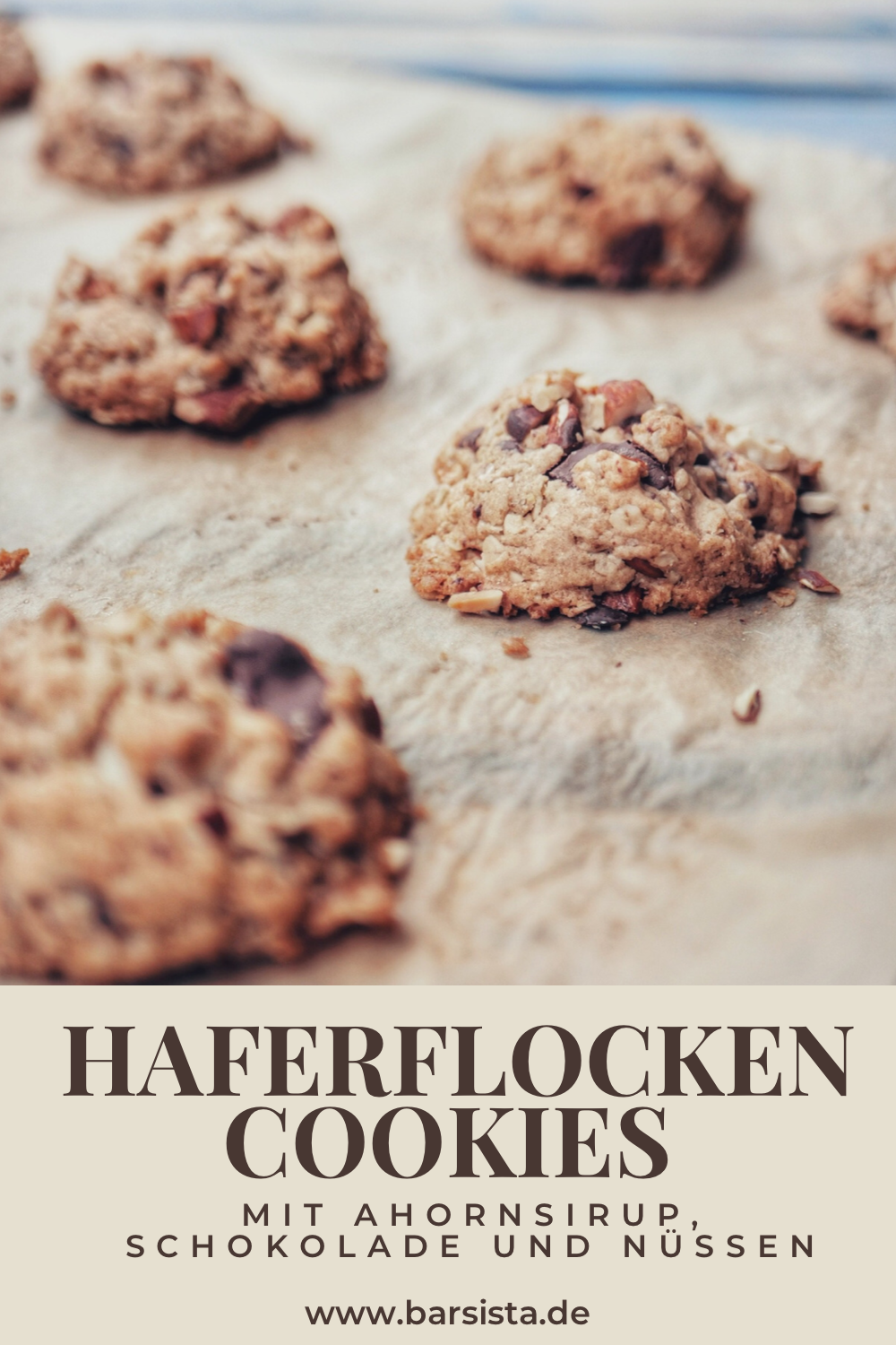 Vegane Haferflockencookies mit Ahornsirup, Schokolade und Nüssen
