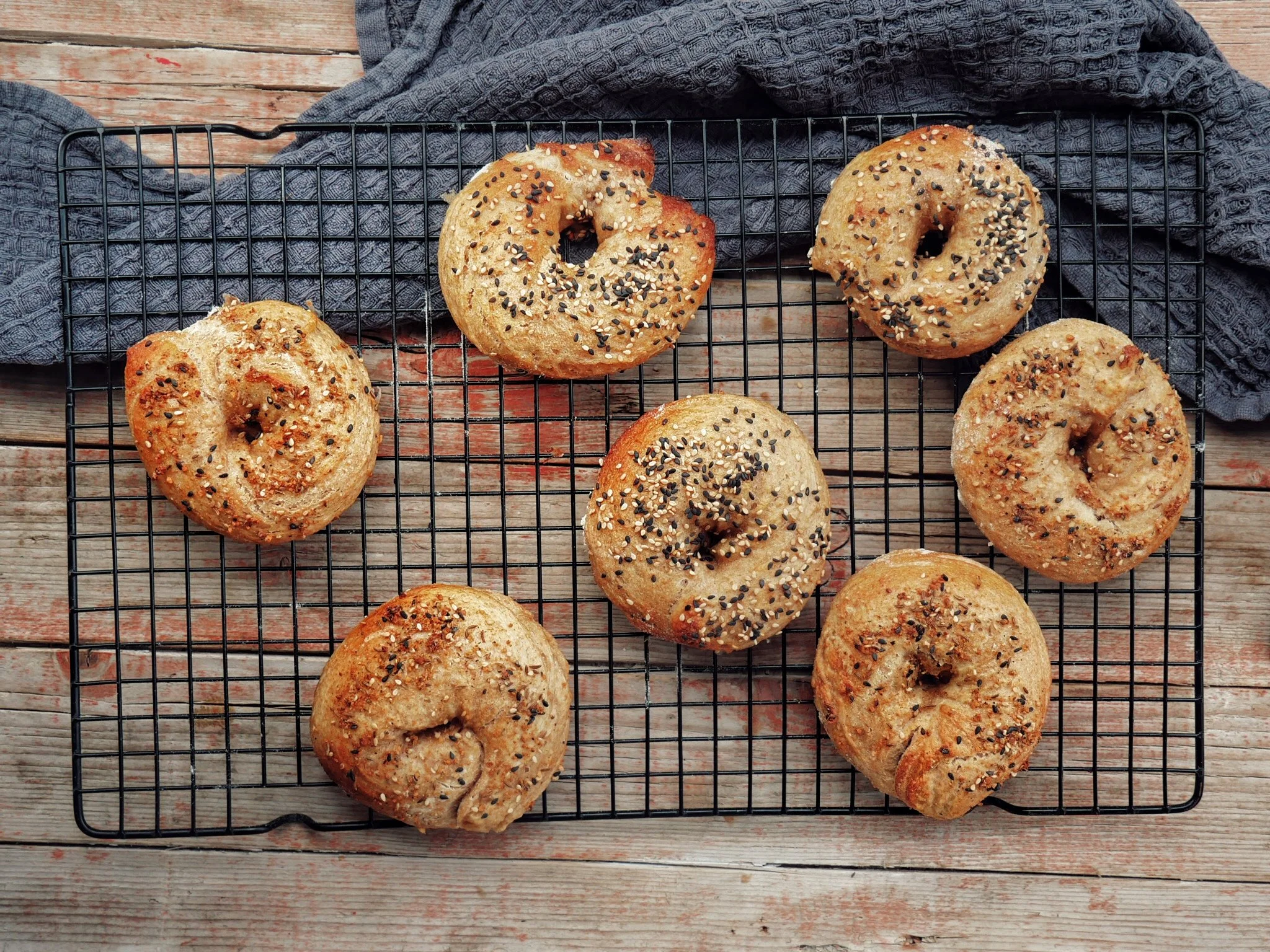 Die fertigen Bagel auf einem Kuchengitter abkühlen lassen oder gleich warm aufessen.
